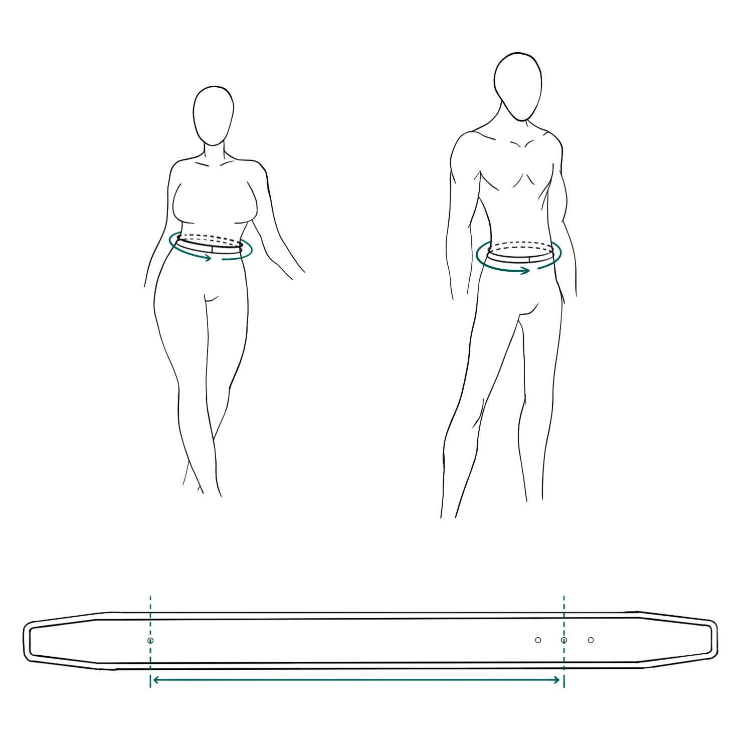 Pour déterminer votre taille de ceinture, mesurez votre tour de taille en trouvant la partie la plus étroite entre le bas des côtes et le haut des hanches. Enroulez le ruban de mesure autour de cette zone, sans serrer, en le gardant parallèle au sol. Votre taille de ceinture idéale est généralement 2 à 5 cm de plus que cette mesure, pour un ajustement parfait.